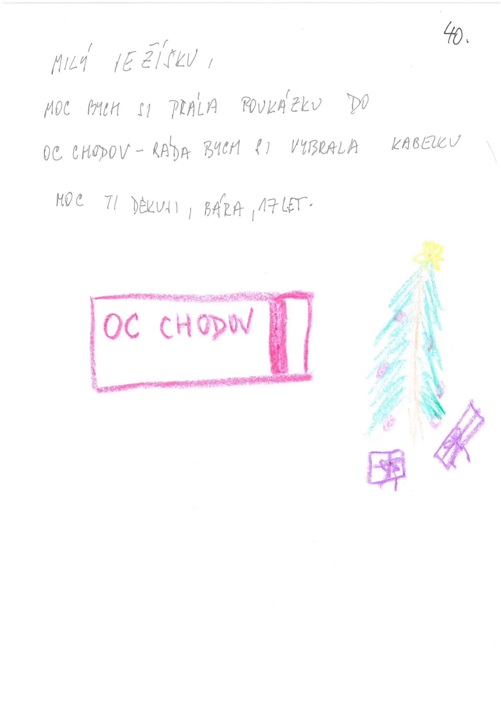 Rádi bychom vás poprosili, abyste dárky, označené jménem a především ČÍSLEM! (v tomto případě: #40) donesli do kanceláře IBS-ROKAL (Táborská 2025, Černošice, 3. patro nad lékárnou v Centru Vráž). Akce probíhá od 10.11. do 15.12. a 17.12. se dárky odvážejí dětem. Dárky je možné přinést ve dnech po, út, čt mezi 9-16 hodinou. Po domluvě můžete dárky předat paní Pánkové (tel.: 736 761 394).